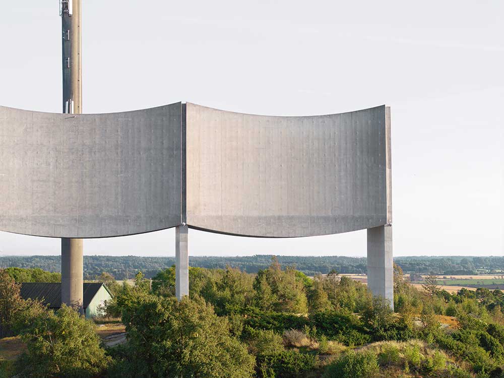 E in effetti il progetto dello studio White Arkitekter che ha vinto il concorso di progettazione indetto da Vivab, la società che gestisce il ciclo idrico della città di Varberg, sulla costa occidentale della Svezia, è unica nel suo genere. Lunga 187 metri ma larga solo 9, Våga è una sequenza di otto segmenti concavi di calcestruzzo retti da nove possenti pilastri, quello centrale che contiene scale e ascensori, che si staglia orgogliosamente nel paesaggio rurale di Träslöv, a est del centro di Varberg, ben visibile dalla vicina autostrada E6.