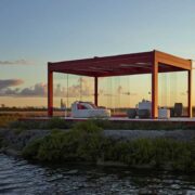 La progettazione e il design sono stati guidati dal concept di un’abitazione a forma di U, sviluppata intorno a una piscina e a tre differenti aree esterne.