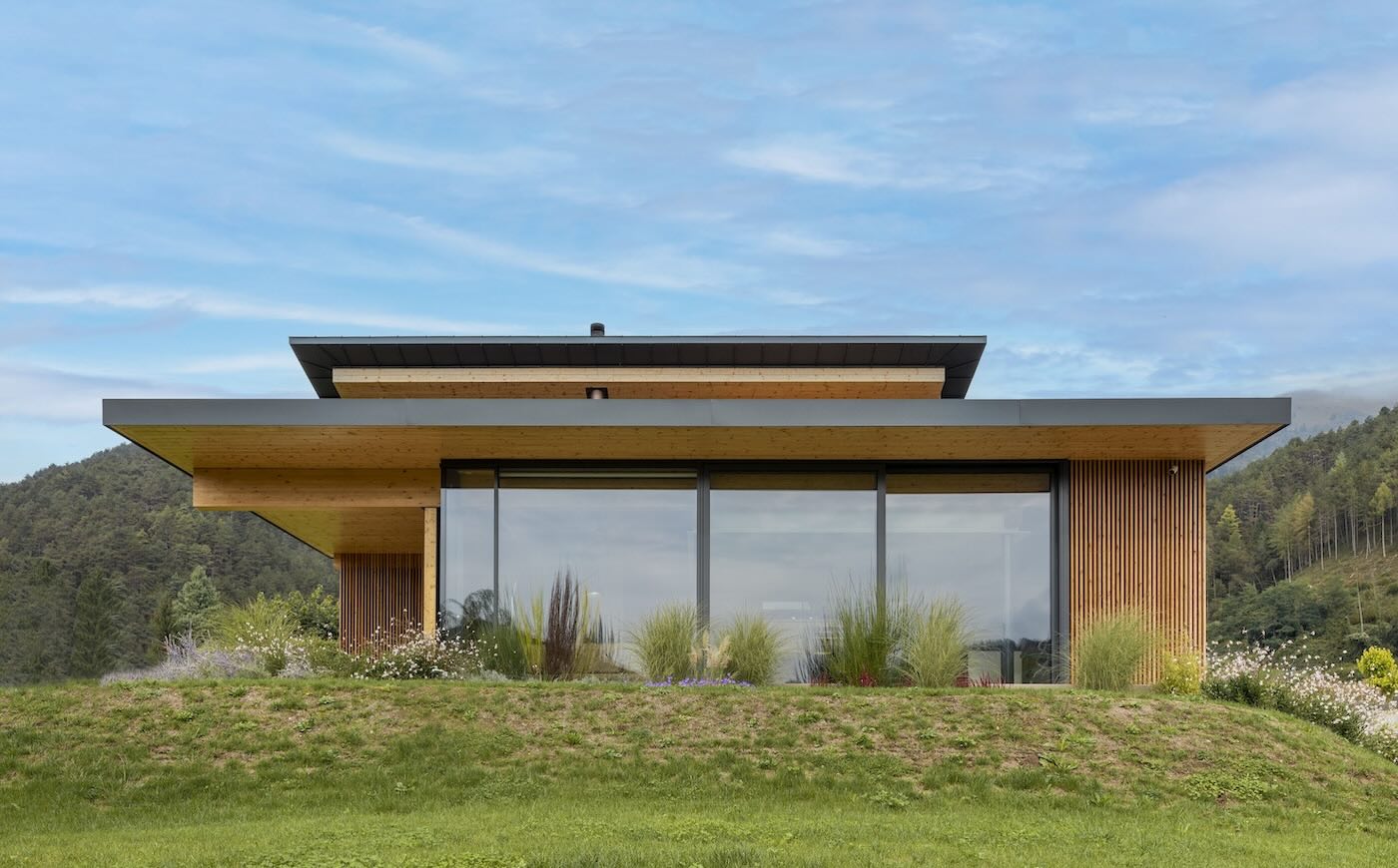 Nel cuore della Val Seriana, tra le Alpi Orobiche, Sabrina Oprandi ha progettato una residenza privata come esercizio di equilibrio tra architettura contemporanea, paesaggio e qualità dell’abitare. L’edificio si inserisce nel contesto naturale seguendo l’andamento del terreno e sviluppandosi su due livelli: un piano a terrazzo destinato alla zona giorno e un piano mansardato per la zona notte, coperto da un tetto a un’unica falda.