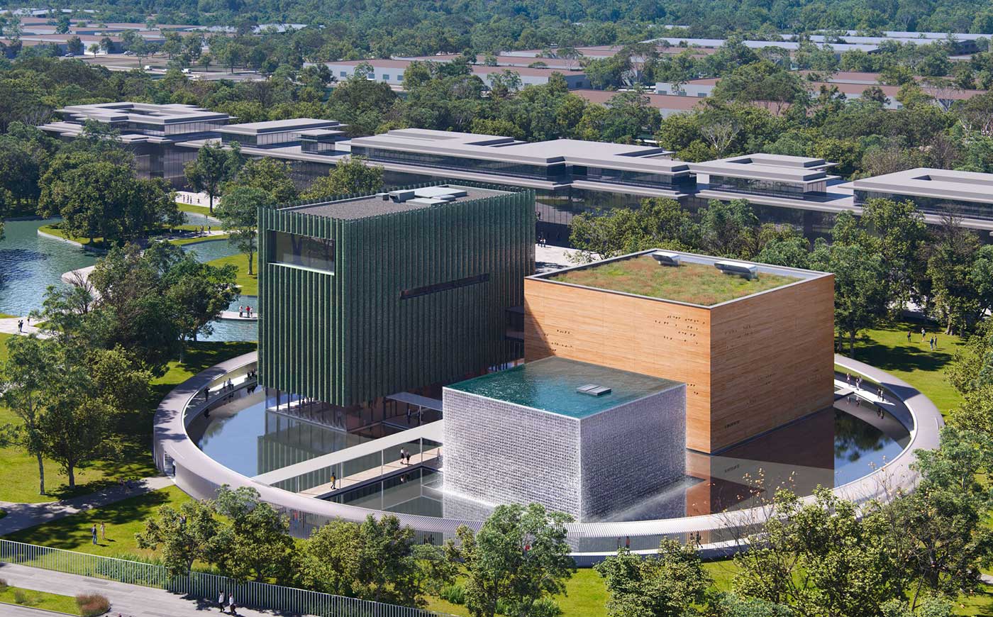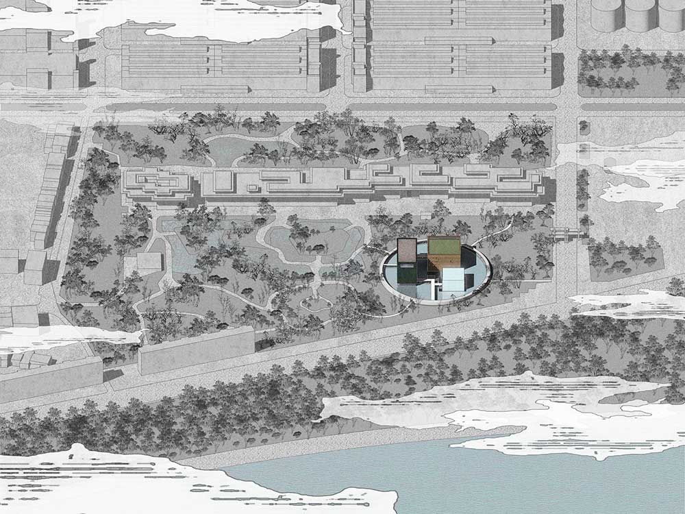 A Shehong, nel Sichuan, nel 2027 aprirà al pubblico il centro espositivo delle distillerie Shede. Ispirato al principio cinese del giardino ‘uno stagno, tre montagne’, il concept architettonico di Open Architecture sviluppa tre volumi che emergono come isole da uno specchio d’acqua circolare di 90 metri di diametro circondato da una passerella coperta.