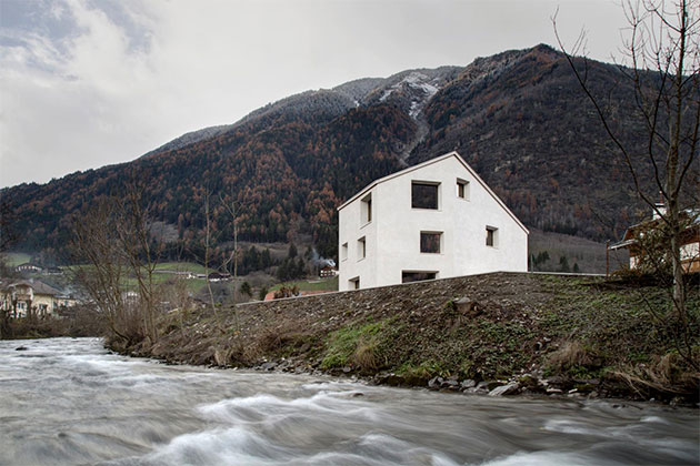 Tra i 50 finalisti un progetto italiano, la Haus am Mühlbach dello studio Pedevilla Architects di Brunico (BZ), edificio monofamiliare di nuova costruzione sulla riva del Rio Selva dei Molini, nel comune di Campo Tures (Bolzano). Un’architettura rigorosa, monolitica e compatta, che si contraddistingue per l’essenzialità delle forme geometriche e per il colore bianco dei rivestimenti.