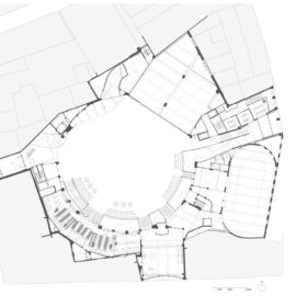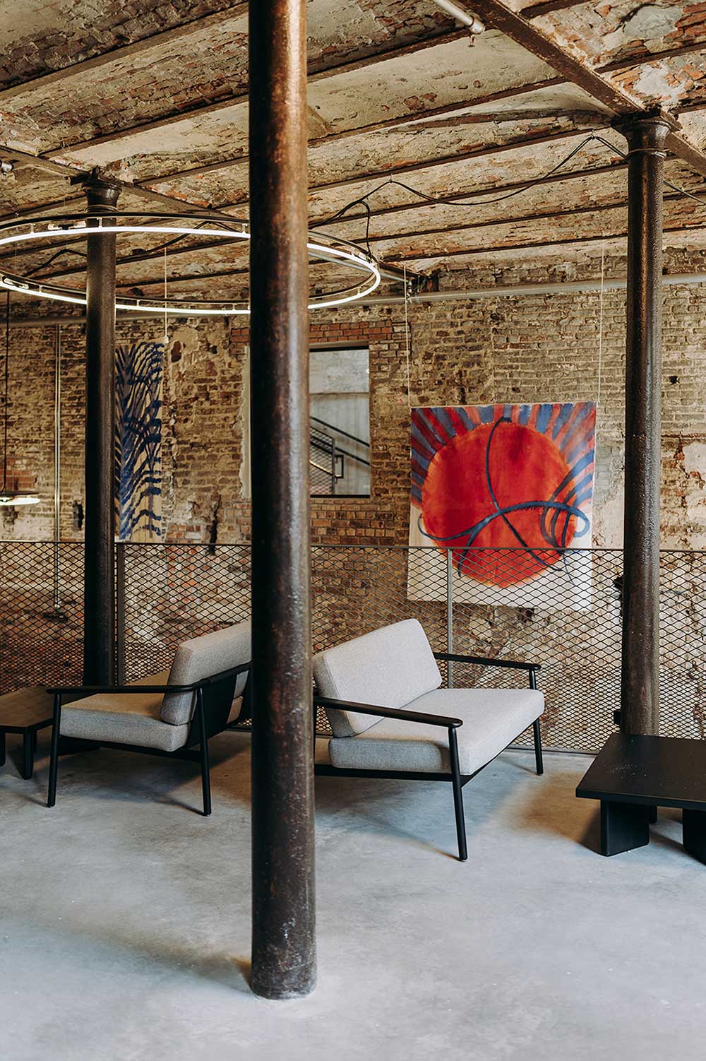 Gli interni, caratterizzati da colori e texture ispirati al passato circense dell’edificio e dagli arredi di recupero e quelli custom di Buro Project, creano un ambiente accogliente e stimolante per i visitatori e gli utenti.