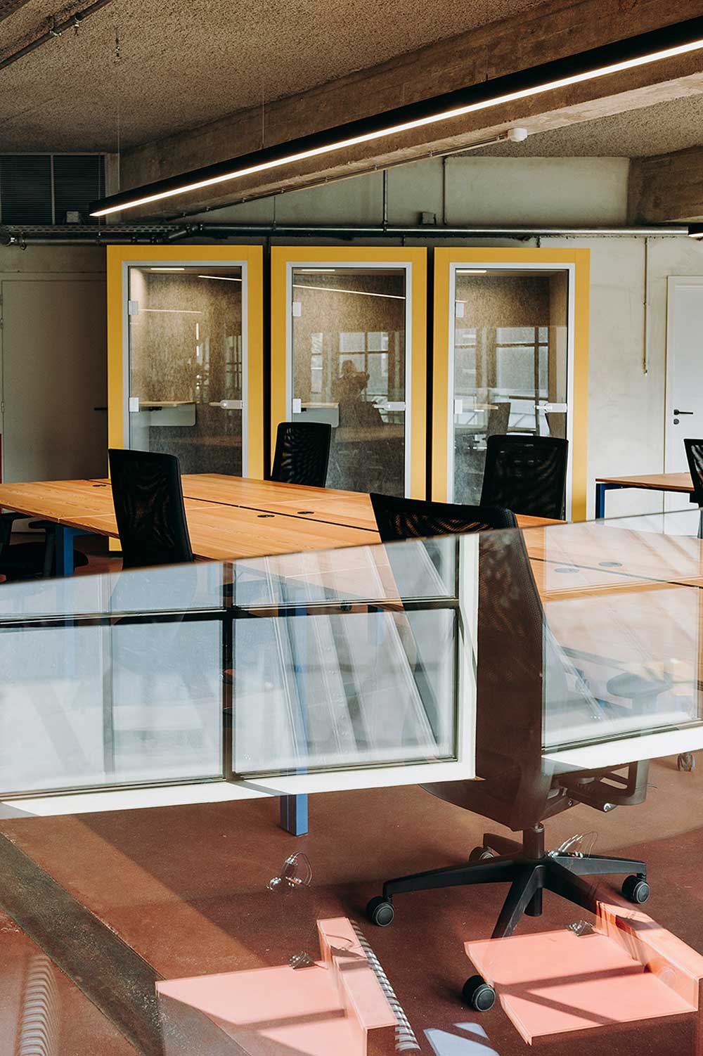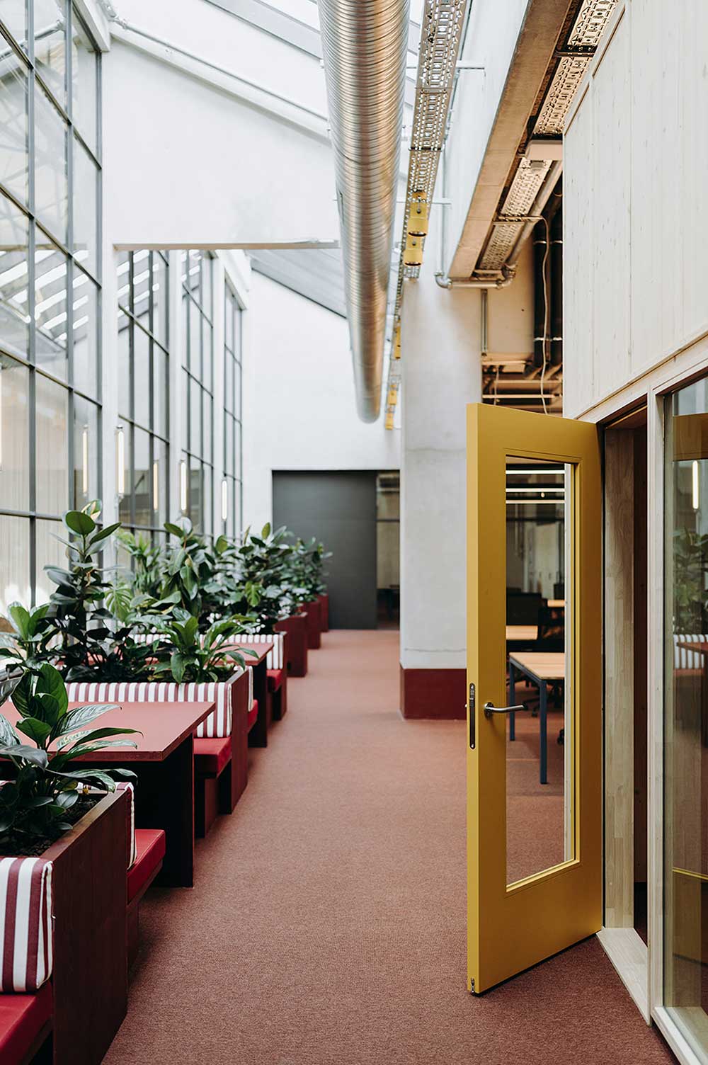 Dalle sale riunioni e alle aree relax, gli uffici per le start-up, distribuiti su più livelli, si distinguono per l’utilizzo di materiali caldi e naturali, come legno e mattoni, abbinati a una palette di colori che spazia dal verde al giallo e al rosso.