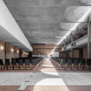 Affacciato al primo piano, l’auditorium, con una capienza di oltre cento persone, è uno spazio versatile ideale per conferenze e presentazioni, caratterizzato da pareti in vetro.