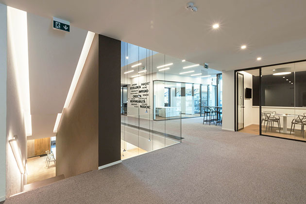 L´edificio si sviluppa su tre livelli e presenta una rinnovata distribuzione funzionale distinguendo l’area privata degli uffici al piano superiore dagli ambienti pubblici – showroom, sale riunioni, auditorium – collocati al piano terra. Il terzo piano accoglie un grande terrazzo per eventi e presentazioni.