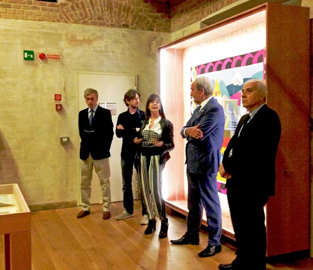 L’inaugurazione stamattina al Belvedere della Villa Reale. Da sinistra il curatore Renato Besana, l’architetto Lorenzo Damiani, Silvana Annichiarico direttrice del Triennale Design Museum, Carlo Edoardo Valli presidente della Camera di Commercio di Monza e Brianza e il sindaco di Monza Roberto Scanagatti |