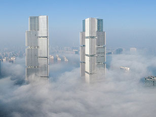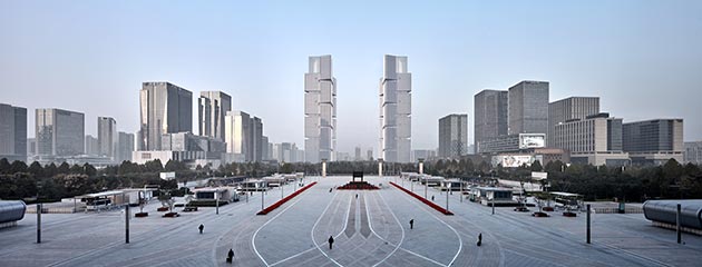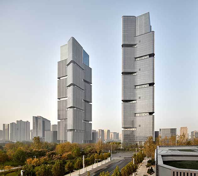 Zhengzhou, provincia di Henan, Cina. Una metropoli in crescita continua: nel 2020 la città della Cina nordorientale avrà più di undici milioni di abitanti. È in questo processo di continua espansione che si colloca la recente realizzazione di due torri gemelle di 284 metri di altezza. Due nuovi edifici progettati dallo studio tedesco Gmp Architekten di Amburgo, che nel 2010 ha vinto un concorso internazionale.