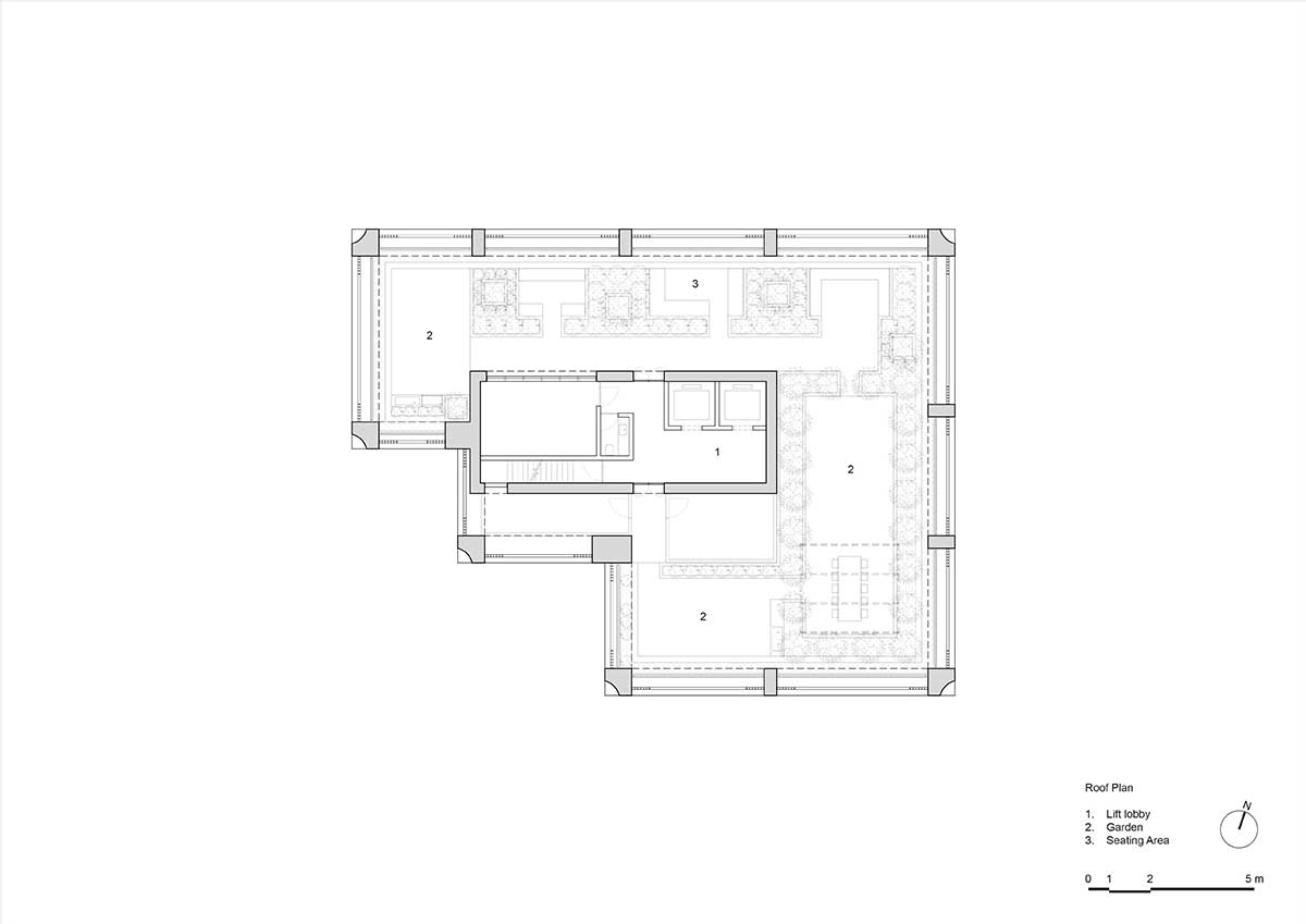 All’ultimo livello, con vista panoramica verso le foreste del parco nazionale Yangmingshan, piante rigogliose delimitano i vari spazi esterni che comprendono un angolo cottura all’aperto e un’area per eventi, piccoli angoli per sedersi, una piattaforma per lo yoga e un’area per gli animali domestici.